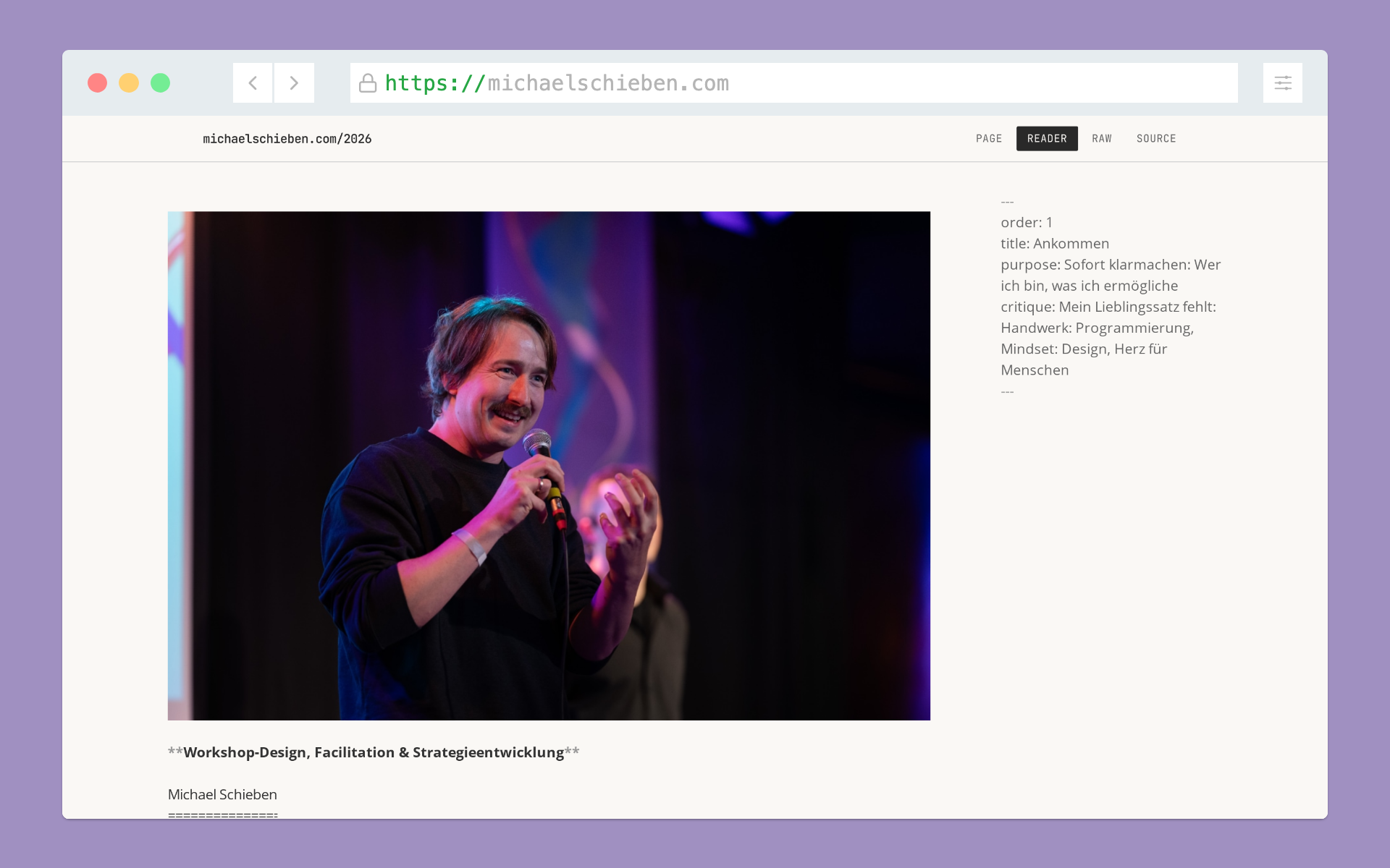 Die Webseite sah aus wie Markdown-Text in meinem Lieblings-Editor iA Writer. Nerdy. Roh. Die Inhalte waren persönlich, aber sicher nicht optimal für Menschen, die mich so gar nicht kennen und etwas brauchen, was ich anbiete.
